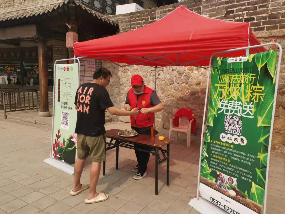 活動二:掃碼購票領(lǐng)禮粽。凡在濟寧全域旅游平臺掃碼購水泊梁山景區(qū)線上門票的游客,均可憑購票鏈接(截圖、二維碼)等在水泊梁山景區(qū)指定地點領(lǐng)取粽子1只,發(fā)完為止。