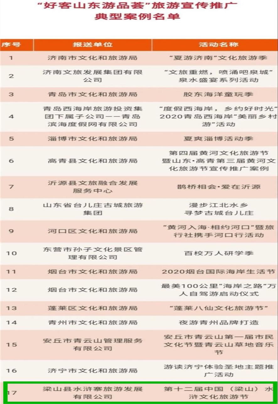 水滸文化旅游節(jié)入選“好客山東游品薈”旅游宣傳推廣典型案例