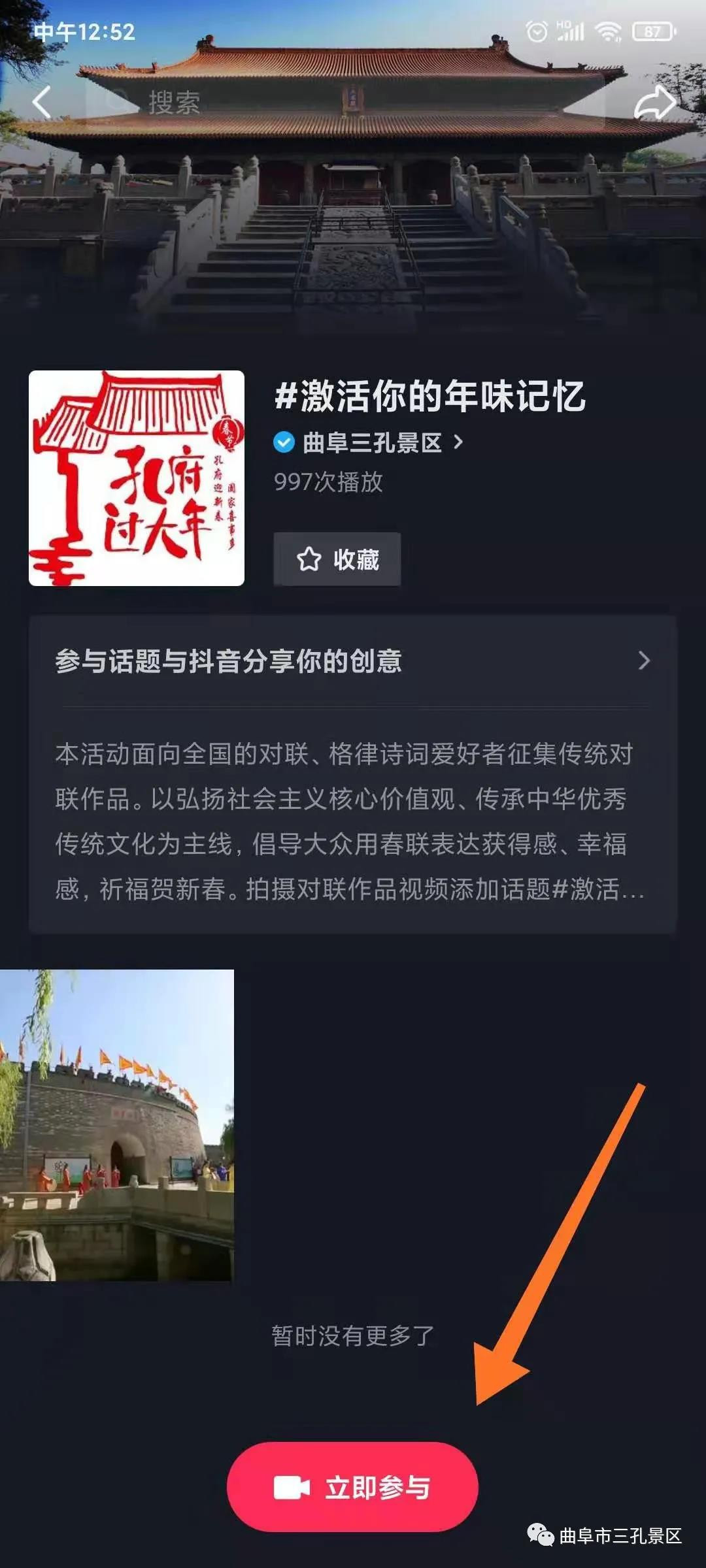 第三步:點擊參與,即可開始拍攝自己的視頻,參加活動;