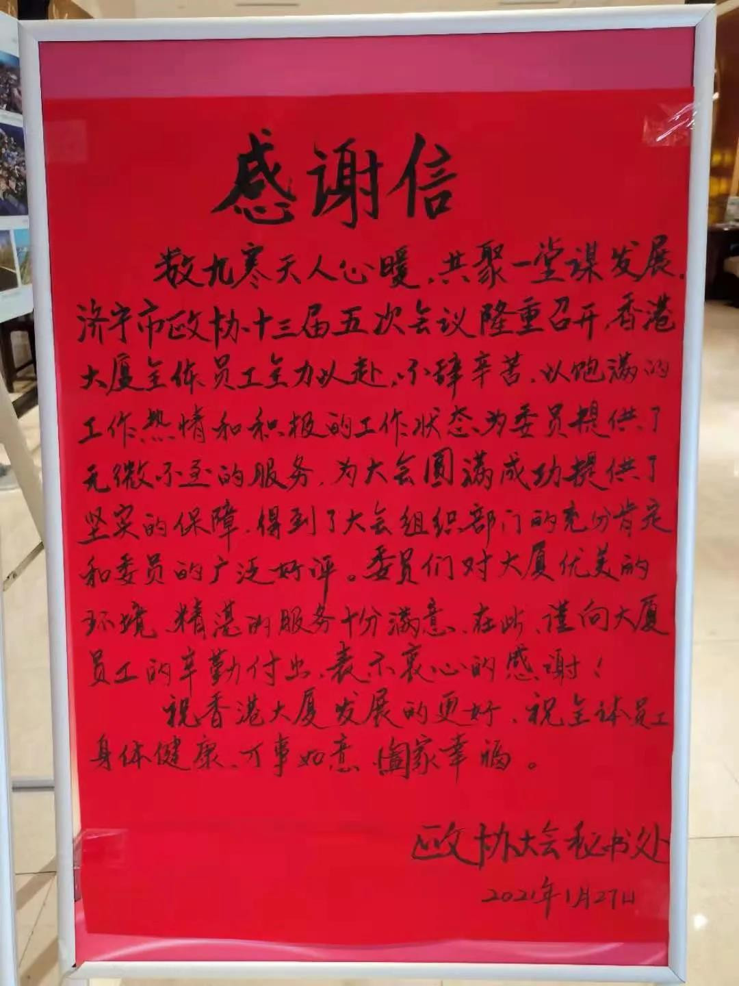 開啟新征程 奮斗“十四五” 香港大廈圓滿完成濟(jì)寧市政協(xié)十三屆五次會議接待
