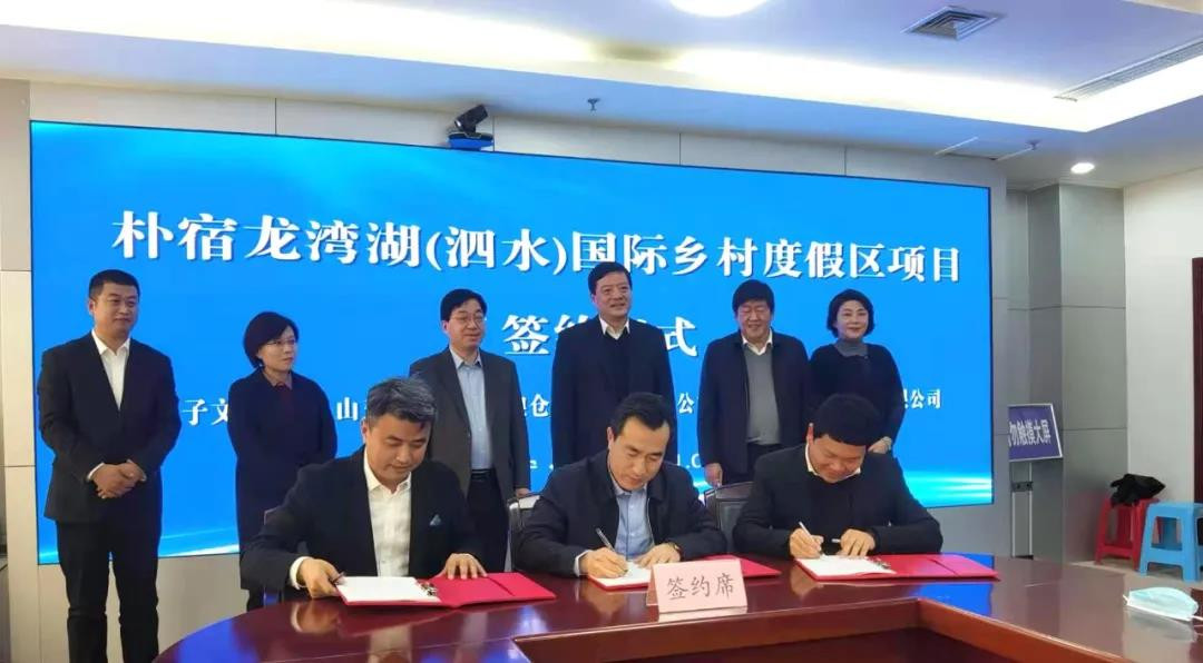 會(huì)上,泗水縣副縣長(zhǎng)陳沖代表泗水縣人民政府與孔子文旅集團(tuán)黨委副書記、副總經(jīng)理山桂嶺簽訂戰(zhàn)略合作協(xié)議。孔子文旅集團(tuán)副總經(jīng)理樊培濤、山東等閑谷藝術(shù)糧倉文化發(fā)展有限公司董事長(zhǎng)田彬、青島樸宿文旅集團(tuán)有限公司董事長(zhǎng)馬春濤三方共同簽訂樸宿龍灣湖(泗水)國(guó)際鄉(xiāng)村度假區(qū)項(xiàng)目合作協(xié)議,將共同開發(fā)建設(shè)“樸宿·糧舍山居”高端民宿項(xiàng)目。