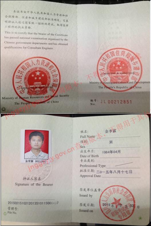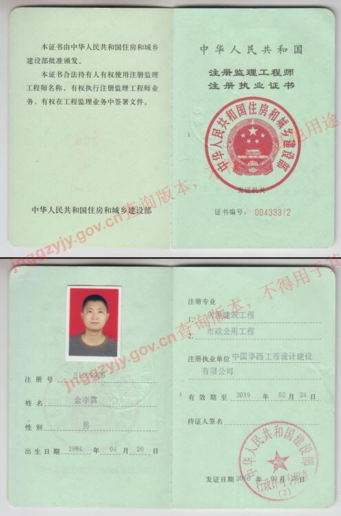 金李霖(市政公用工程專業(yè)監(jiān)理工程師)