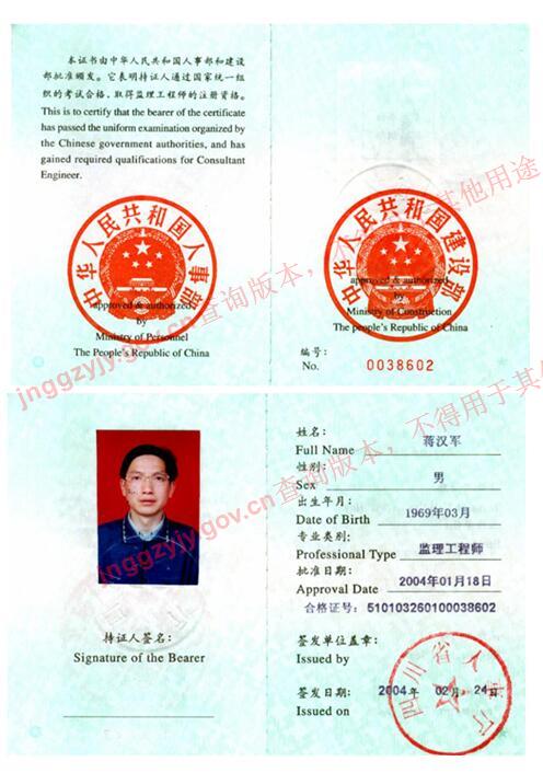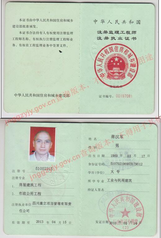 蔣漢軍(房屋建筑專業(yè)監(jiān)理工程師)