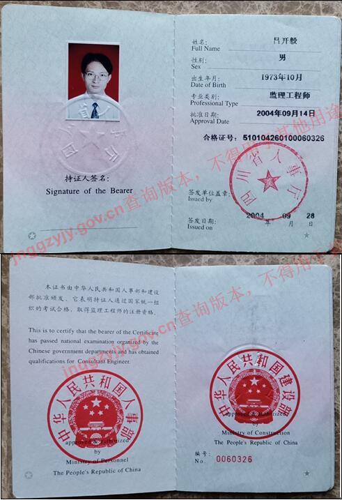 呂開毅(市政公用工程專業(yè)監(jiān)理工程師)
