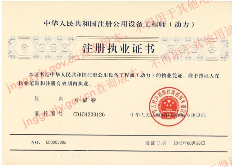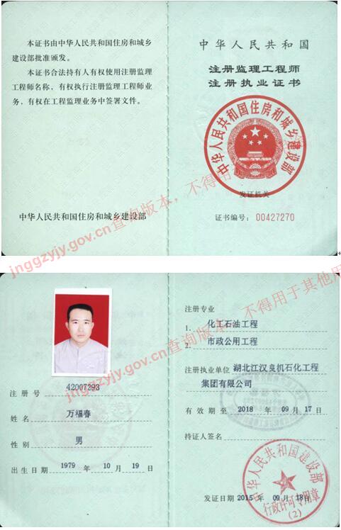 萬福春(機(jī)電安裝工程專業(yè)監(jiān)理工程師)