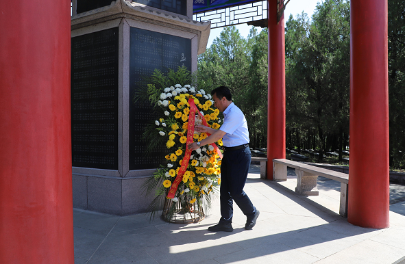 6月4日、6日上午,公司黨員干部從孟良崮戰(zhàn)役的偉大指揮者陳毅元帥、粟裕將軍侍馬而立的塑雕兩側(cè)進(jìn)入紀(jì)念館園區(qū),大家懷著崇敬的心情來到了烈士陵園,那密密麻麻的墓碑無聲的訴說著先烈們?yōu)榱诵轮袊恼Q生所做出的偉大犧牲。大家來到烈士英名碑前向烈士紀(jì)念碑敬獻(xiàn)花籃,緬懷在戰(zhàn)爭中犧牲的革命烈士,并集體重溫了入黨誓詞。